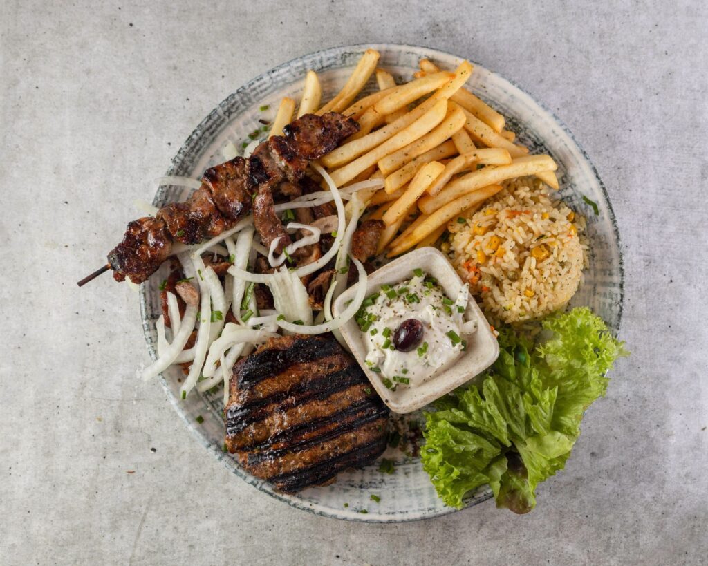 „Genießen Sie unsere herzhaften Grillplatten: Von der Falkenplatte mit Souvlaki, Bifteki und Gyros über die Olymposplatte mit zarten Lammkoteletts bis hin zur Helenaplatte mit saftiger Hähnchenbrust – wir bringen den echten Geschmack vom Grill direkt zu Ihnen.“